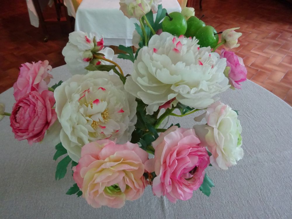 Frische Gartenblumen im Frühstücksraum