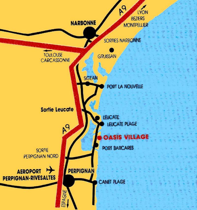 Mittelmeerküste und Surfsee bei Leucate, Pfeil zeigt auf die Anlage Oasis